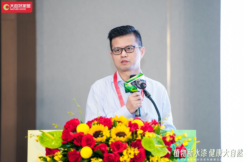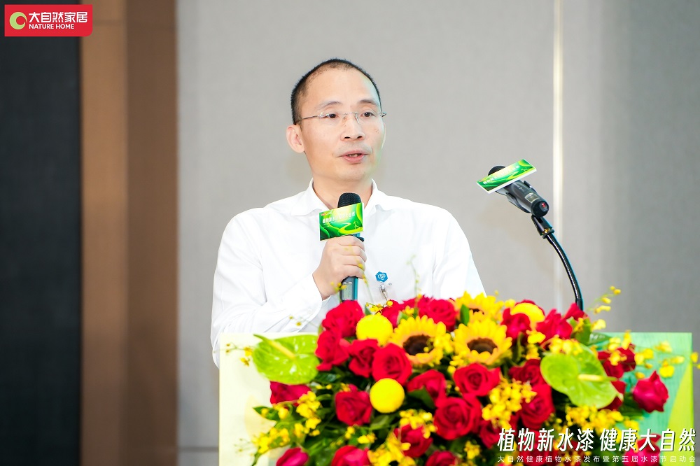 發(fā)布會現場,中國建博會負責人楊華偉在致辭中表示,大自然家居本次使用健康植物水漆,更好地踐行了雙碳戰(zhàn)略,將再一次推動產業(yè)的綠色升級。