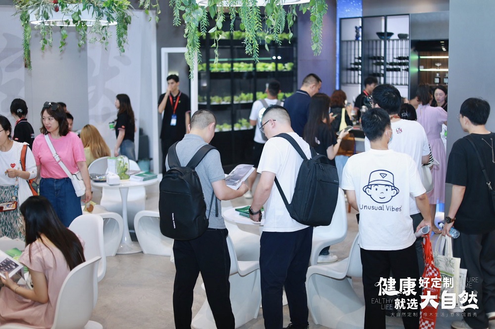 展館人氣聚集,對自然生活的寫意與向往吸引眾多行業(yè)人士、客商、網紅達人、生活主播、小紅書KOL及專業(yè)媒體的關注打卡,現場人流絡繹不絕,展開一場綠色健康×高定生活的隔空對話。