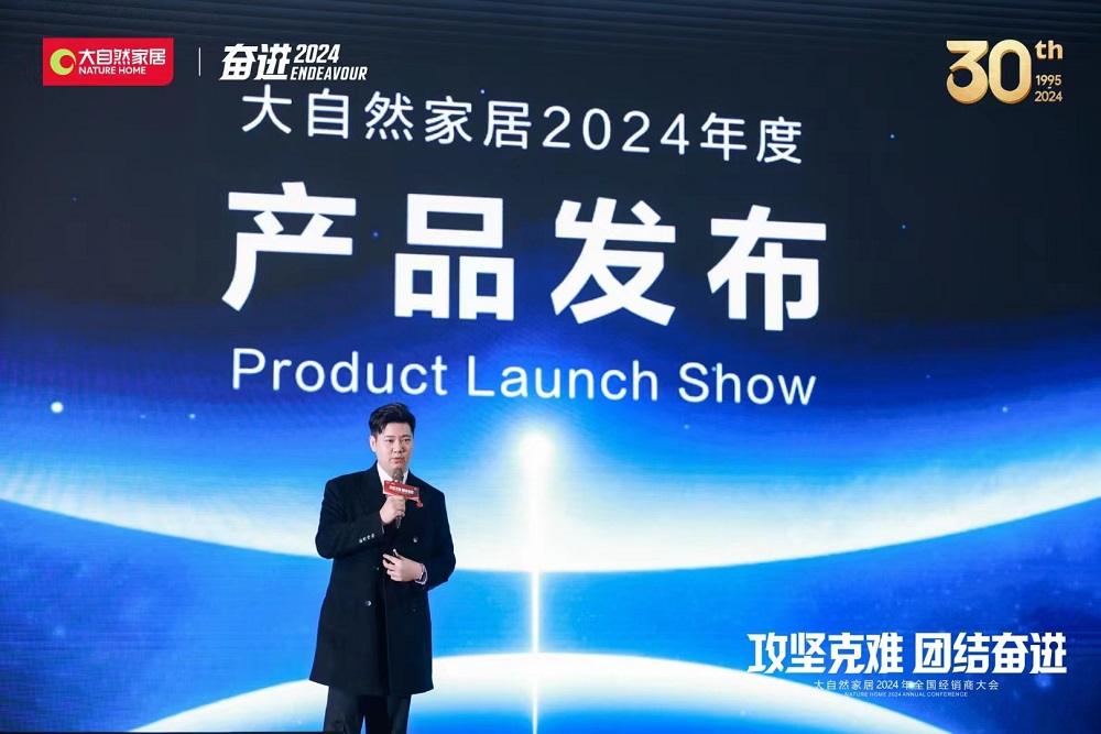 大自然家居多年來一直堅持產品創新,致力于做優秀的產品提供商,在本次經銷商大會上,大自然家居集團常務副總裁、產品和研發總部總經理佘嘉浚帶來了一場精彩絕倫的新品發布秀。這次新品發布秀是集團首次統一發布地/門/墻/柜產品,展示了2024年家居生活方式的全新理念。新品展示突出了大自然家居的產品哲學、空間美學以及新概念、新工藝、新技術、新產品的應用,為經銷商們帶來了無限驚喜和創新靈感。展廳內,各式高品質家居產品吸引了眾多經銷商的目光和贊嘆,大自然家居2024年新品的發布不僅讓經銷商們對未來的產品線有了更清晰的了解,也為他們帶來了新的銷售和合作機會。