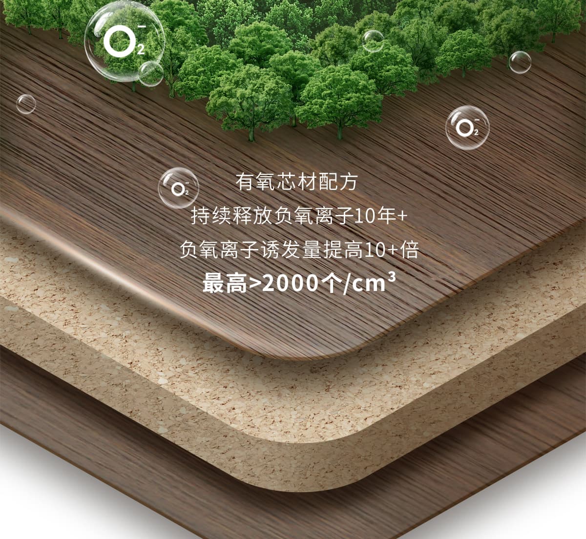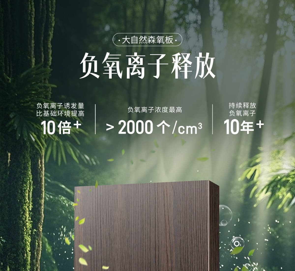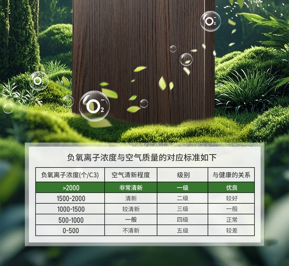 誘發空氣負離子量 比基礎環境提高10倍+