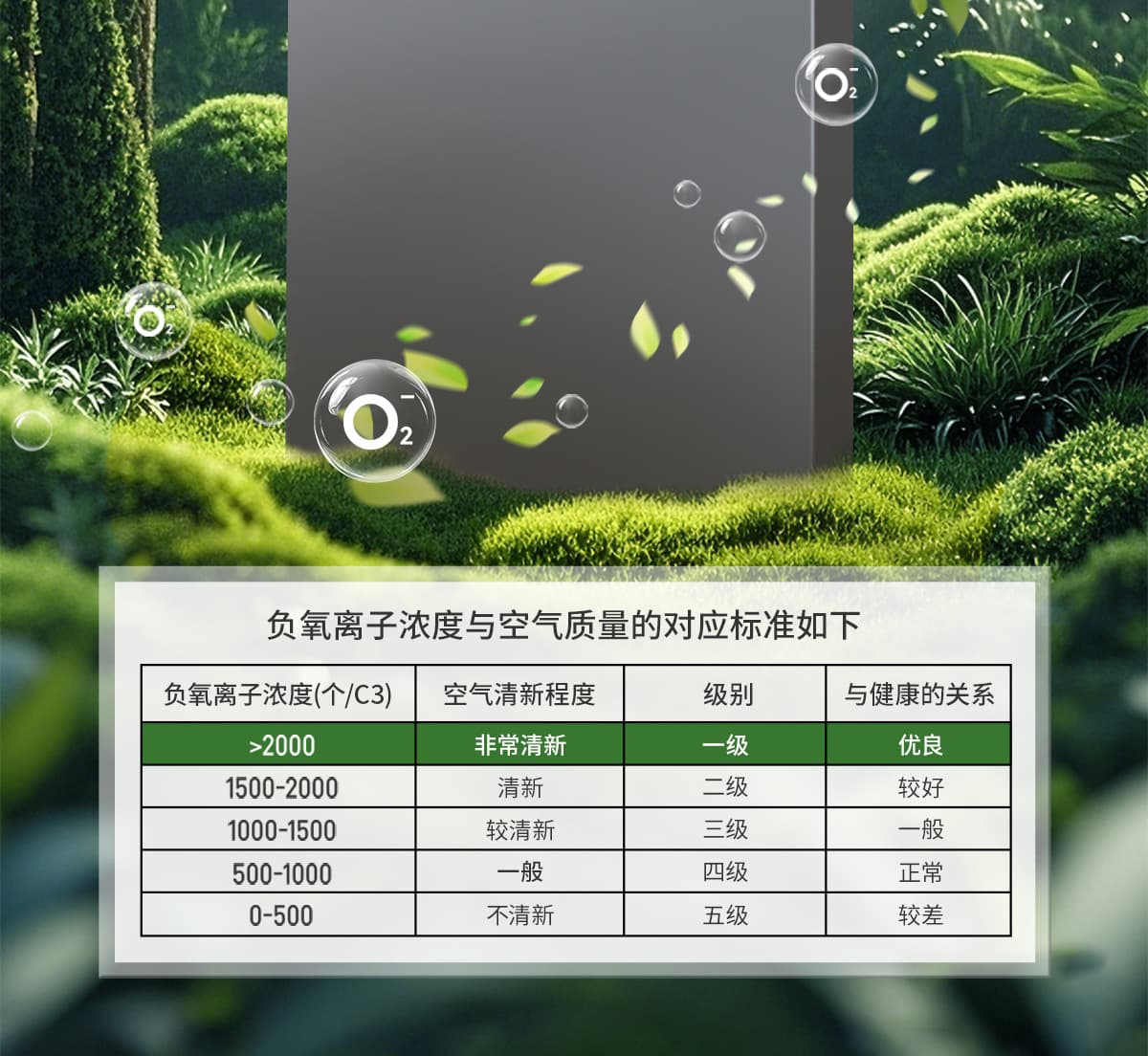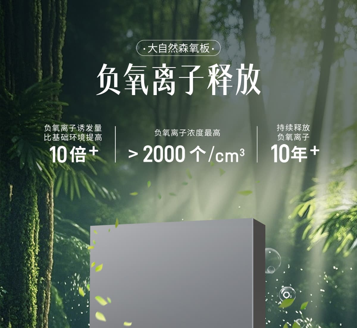 誘發空氣負離子量 比基礎環境提高10倍+